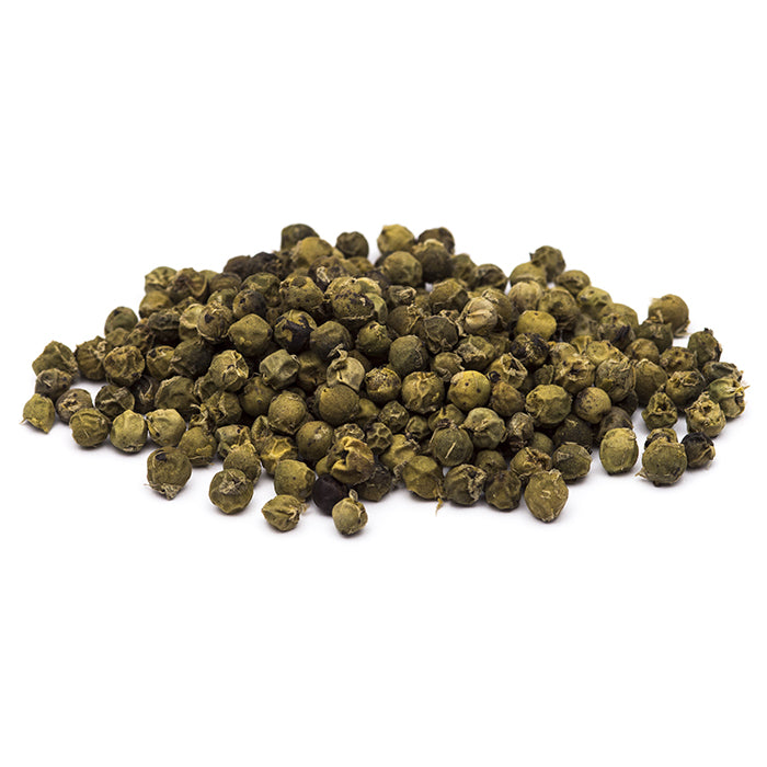 Zelené sušené nezrelé plody piepru čierneho, krehké a príjemne chrumkavé, s typickým zvráskaveným povrchom. Ručne zbierané dlho pred dozretím a šetrne usušené, aby si zachovali peknú zelenú farbu. S pestrou, sviežou a korenistou vôňou s tónmi citrusového ovocia. Príjemne ostré a energické, so sviežou chuťou s črtami čerstvých zelených plodov.